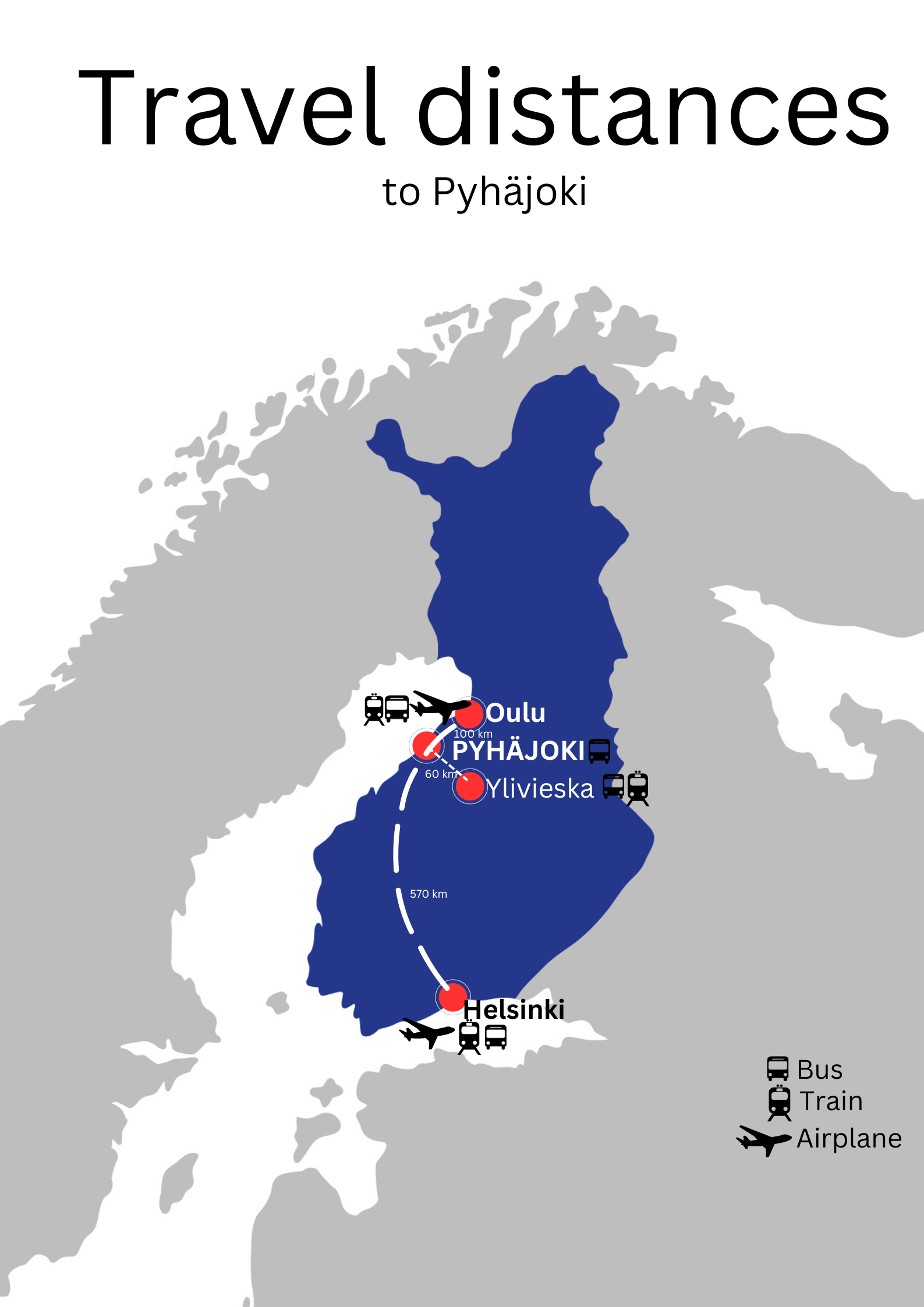 皮哈约基距离奥卢(Oulu)和最近的机场约100公里,从奥卢开车到皮哈约基大约需要1小时。
